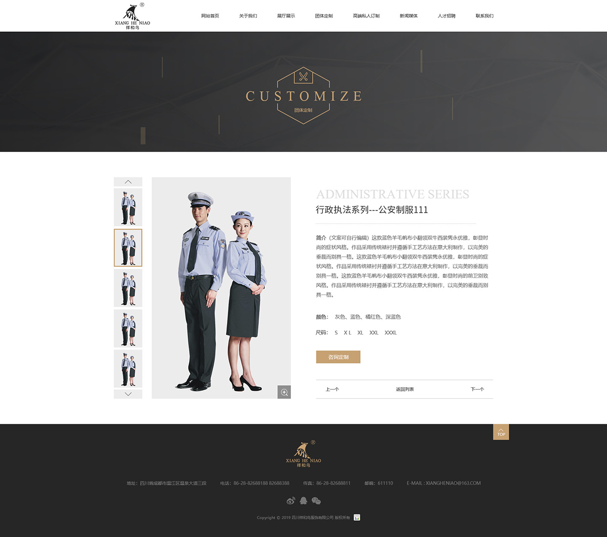 四川祥和鸟服饰有限公司是一家专业设计、生产销售西服、制服、户外服、工装的国际化大型服装生产企业。年生产能力200多万套,年产值人民币2亿多元。公司占地面积50亩,建筑面积3万多平方米,注册资金1亿1仟万元。现有员工1200余人。