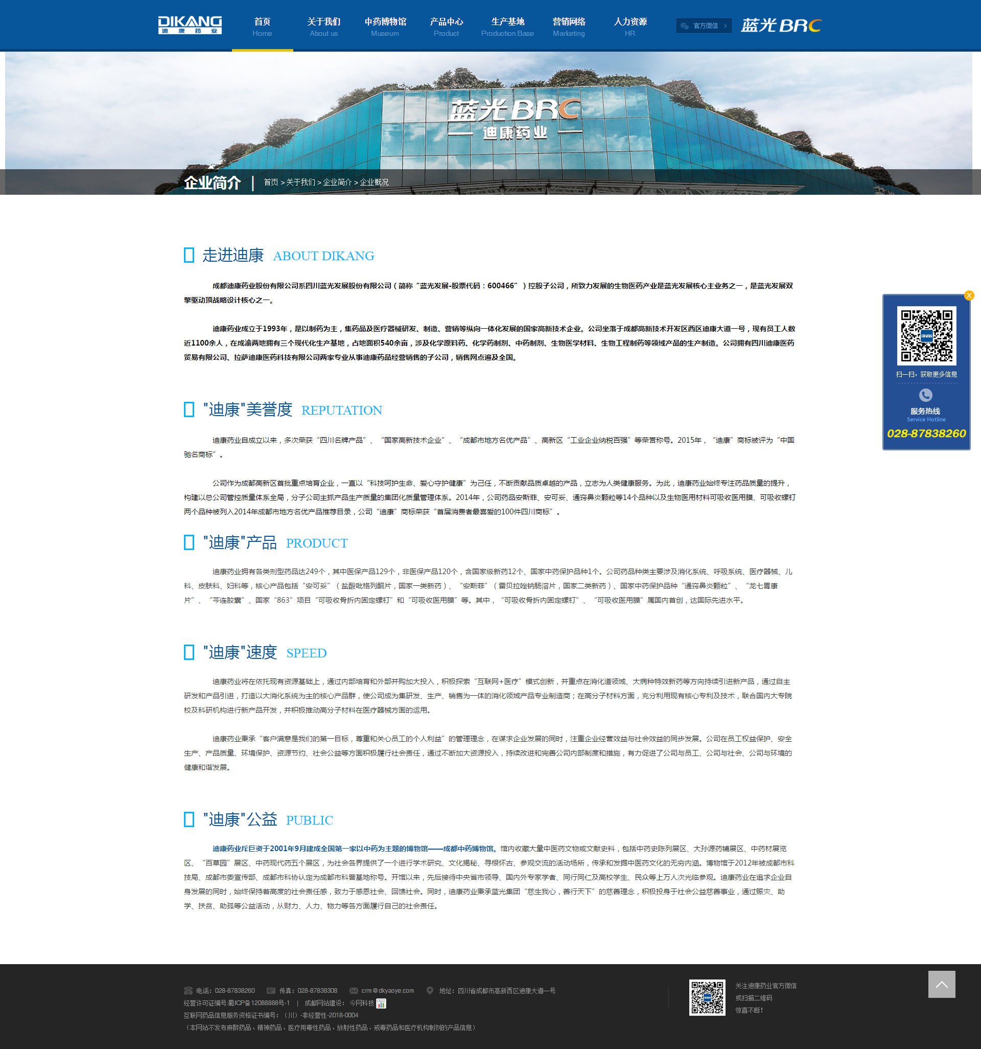 迪康药业成立于1993年,是以制药为主,集药品及医疗器械研发、制造、营销等纵向一体化发展的国家高新技术企业。公司坐落于成都高新技术开发区西区迪康大道一号,现有员工人数近1100余人,在成渝两地拥有三个现代化生产基地,占地面积540余亩,涉及化学原料药、化学药制剂、中药制剂、生物医学材料、生物工程制药等领域产品的生产制造。公司拥有四川迪康医药贸易有限公司、拉萨迪康医药科技有限公司两家专业从事迪康药品经营销售的子公司,销售网点遍及全国。