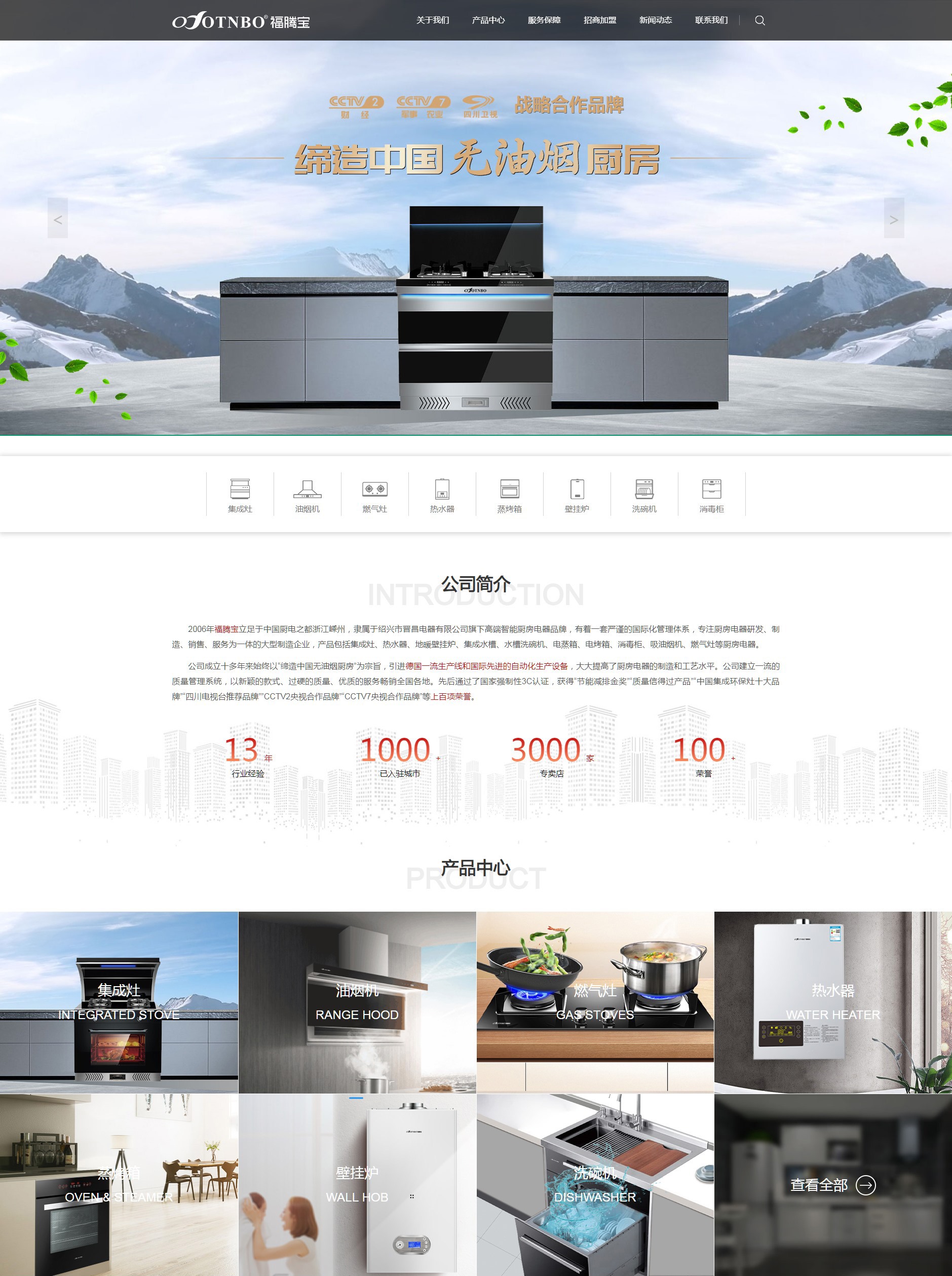 2006年福腾宝立足于中国厨电之都浙江嵊州,隶属于绍兴市晋昌电器有限公司旗下高端智能厨房电器品牌,有着一套严谨的国际化管理体系,专注厨房电器研发、制造、销售、服务为一体的大型制造企业,产品包括集成灶、热水器、地暖壁挂炉、集成水槽、水槽洗碗机、电蒸箱、电烤箱、消毒柜、吸油烟机、燃气灶等厨房电器。