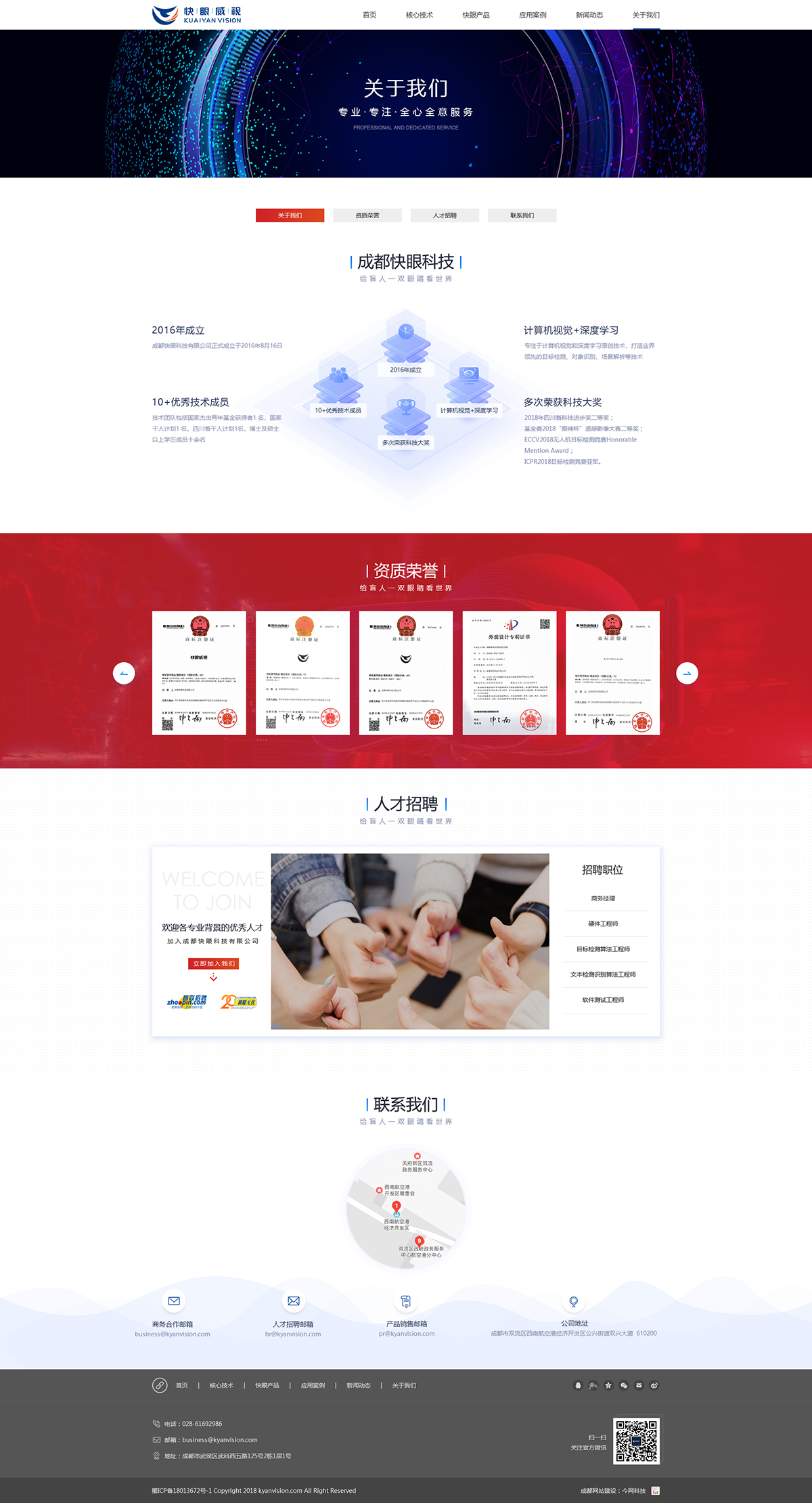 成都快眼科技有限公司正式成立于2016年8月16日,专注于计算机视觉和深度学习原创技术,打造业界领先的目标检测、对象识别、场景解析等技术,技术团队包括国家特聘专家,成都特聘专家,博士及硕士以上学历成员十余名,2019 国家级遥感影像大赛冠军;国际计算机视觉会议ICCV2019无人机目标检测竞赛冠军;2018年四川省科技进步奖二等奖