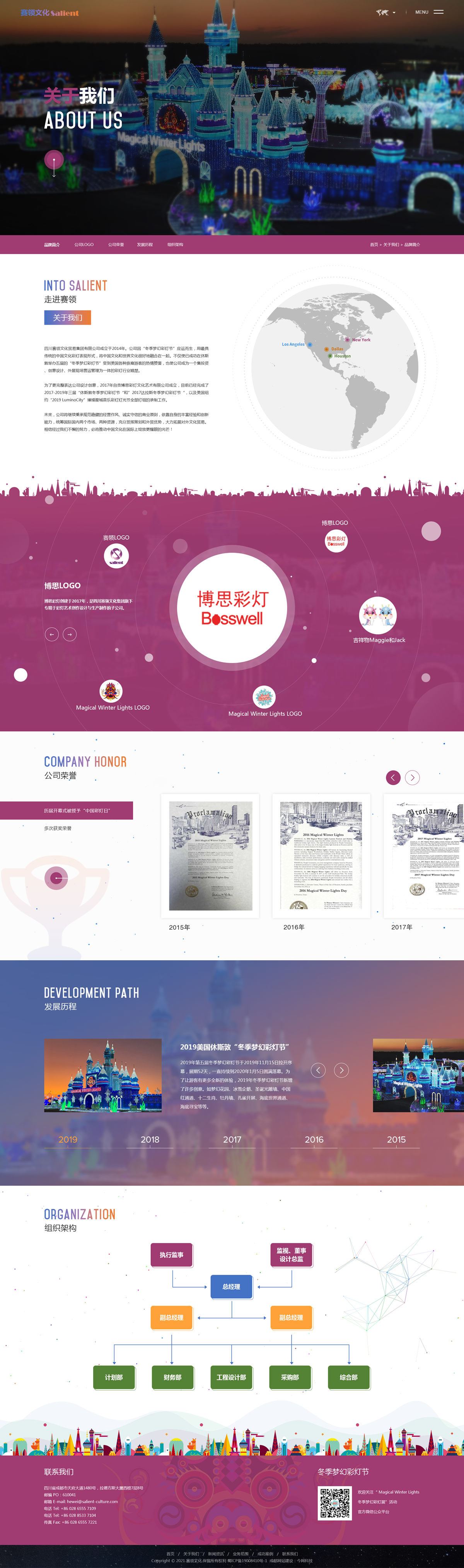 四川赛领文化贸易集团有限公司因“冬季梦幻彩灯节”应运而生,用最具传统的中国文化彩灯表现形式,将中国文化和世界文化很好地融合在一起。不仅使已成功在休斯敦举办五届的“冬季梦幻彩灯节”受到美国各种族裔游客的热情赞誉,也使公司成为一个集投资、创意设计、外展现场营运管理为一体的彩灯行业翘楚。