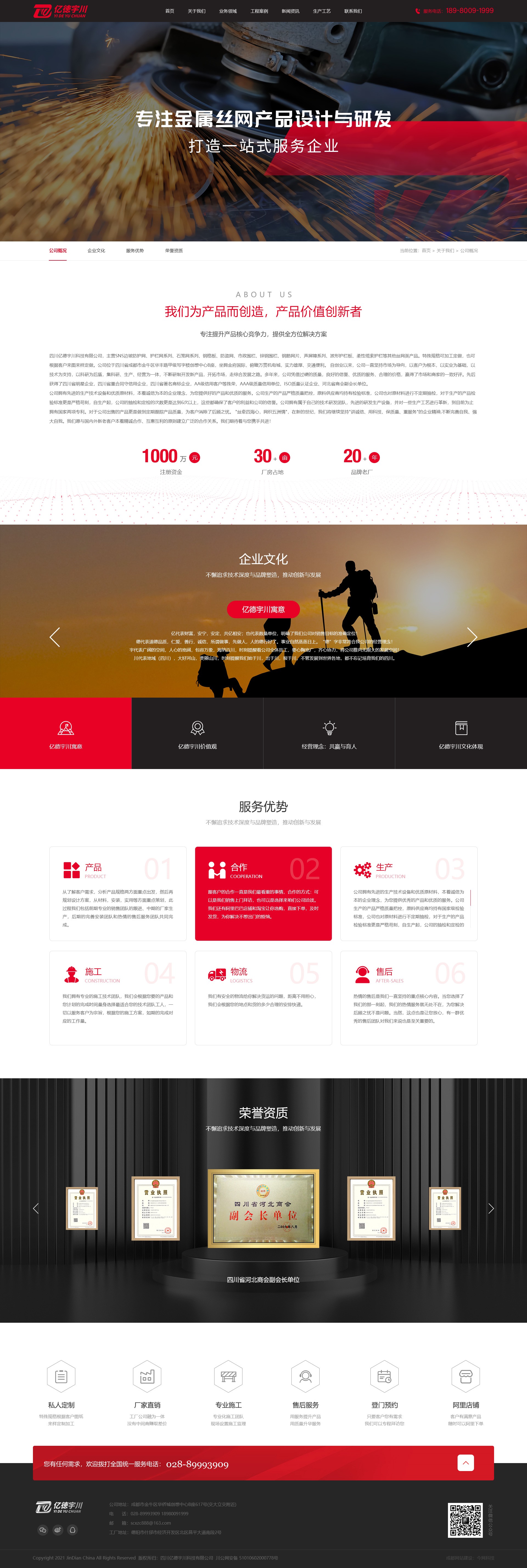 四川亿德宇川科技有限公司,主营SNS边坡防护网、边坡绿化、护栏网系列、石笼网系列、声屏障系列等其他丝网类产品。专注丝网领域20余年,是一家集生产、销售、安装、售后一站式服务企业,产品特殊规格可加工定做,也可根据客户来图来样定做。公司位于四川省成都市金牛区华丰路甲级写字楼创想中心B座,坐拥金府国际,俯瞰万贯机电城,实力雄厚、交通便利。目前工厂位于德阳什邡经济开发区北区,占地30余亩。