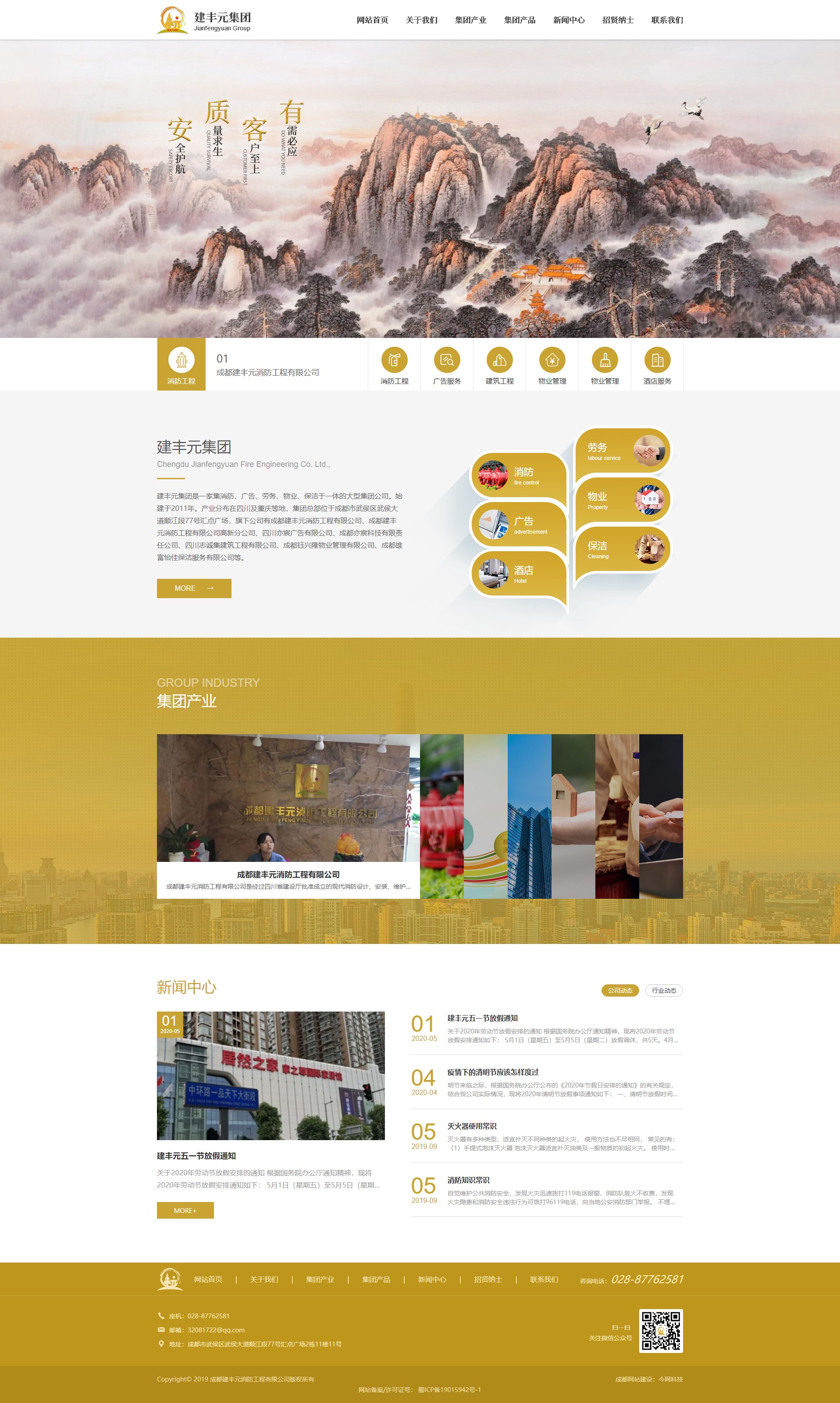 “建丰元”品牌创建于2011年。是一家集消防、广告、物业、保洁、劳务于一体的大型集团公司,产业主要分布于四川及重庆等地。旗下有:成都建丰元消防工程有限公司、成都建丰元消防工程有限公司高新分公司、四川亦宸广告有限公司、成都亦宸科技有限责任公司、四川志诚集建筑工程有限公司、成都钰兴隆物业管理有限公司、成都雄富怡佳保洁服务有限公司等。
