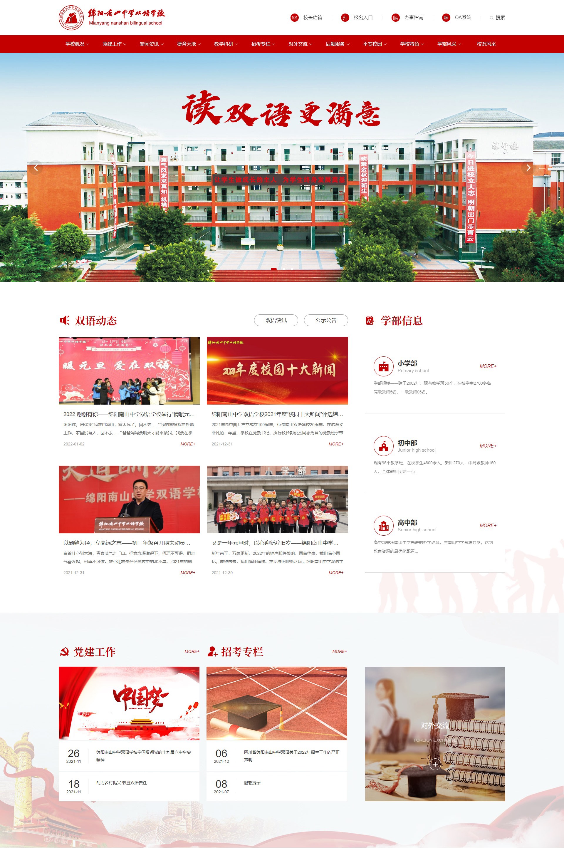 四川省绵阳南山中学双语学校创办于2002年,位于科创园区园艺山之巅,占地450亩,登高望远,俯瞰全城。学校拥有名、优、特教师500余名,是直属于绵阳市教育和体育局的国有控股的公益性事业单位,是由“百年名校”——绵阳南山中学全程管理的集小学、初中、高中于一体的股份制、寄宿制学校。