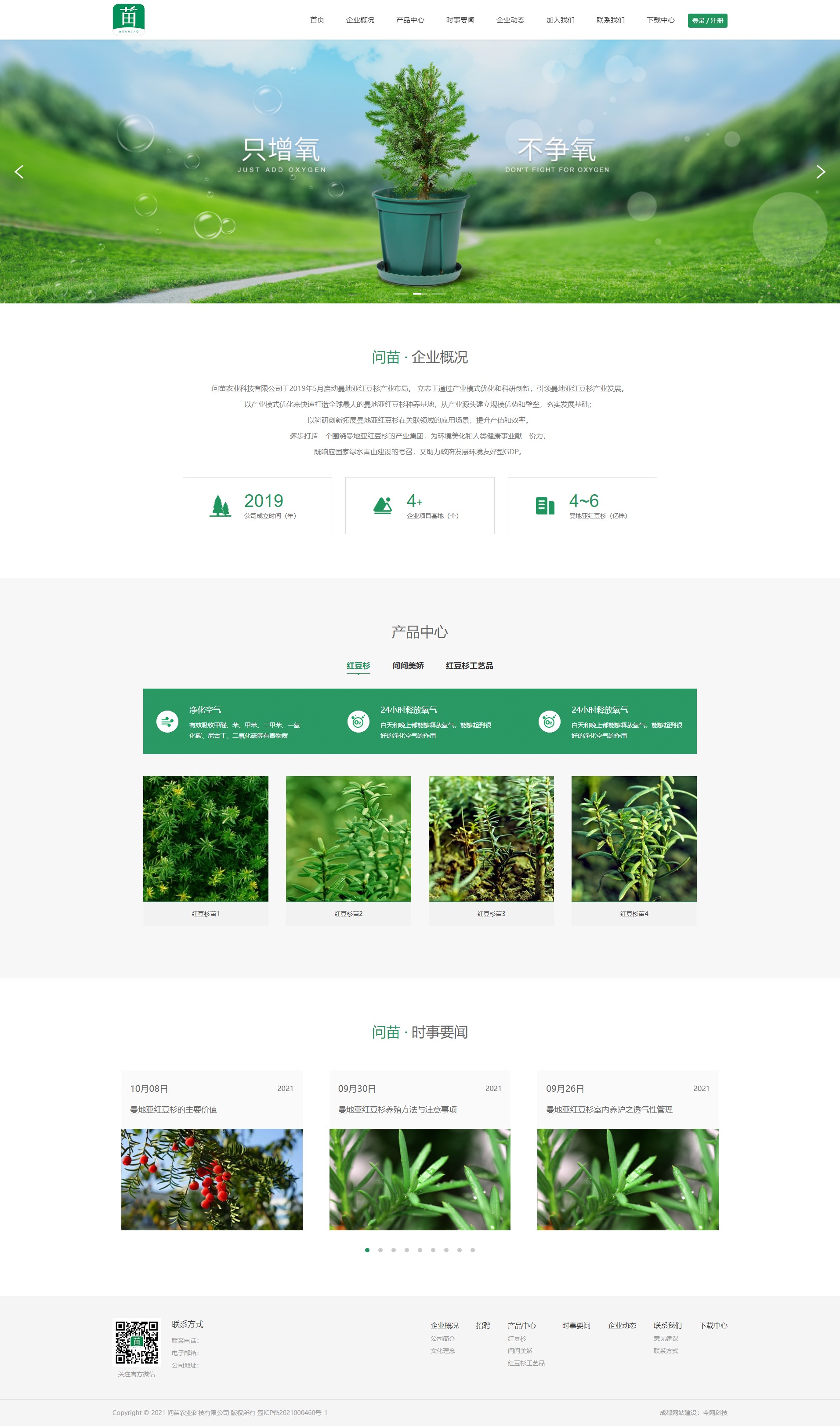 问苗农业科技有限公司于2019年5月启动曼地亚红豆杉产业布局。 立志于通过产业模式优化和科研创新,引领曼地亚红豆杉产业发展。以产业 模式优化来快速打造全球最大的曼地亚红豆杉种养基地,从产业源头建立规模 优势和壁垒,夯实发展基础;以科研创新拓展曼地亚红豆杉在关联领域的应用场景,提升产值和效率。逐步打造一个围绕曼地亚红豆杉的产业集团,为环境美化和人类健康事业献一份力,既响应国家绿水青山建设的号召,又助