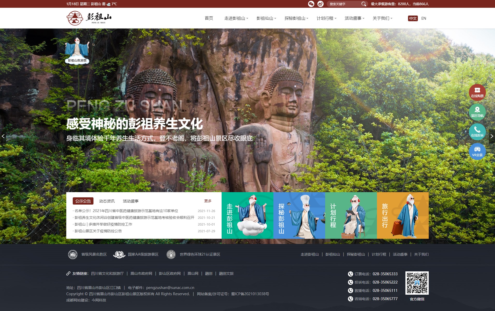 彭祖山景区位于四川天府新区、成都平原南面,眉山市彭山区东北部。彭祖山景区面积约2333亩,海拔高度610米,垂直高差158 米,彭祖山毗邻岷江,与上游青城山、下游峨眉山,构建了“青城天下幽、峨眉天下秀、彭祖天下寿”的蜀中三山格局。